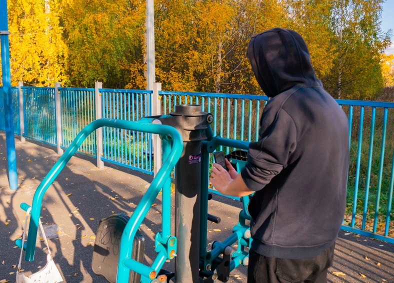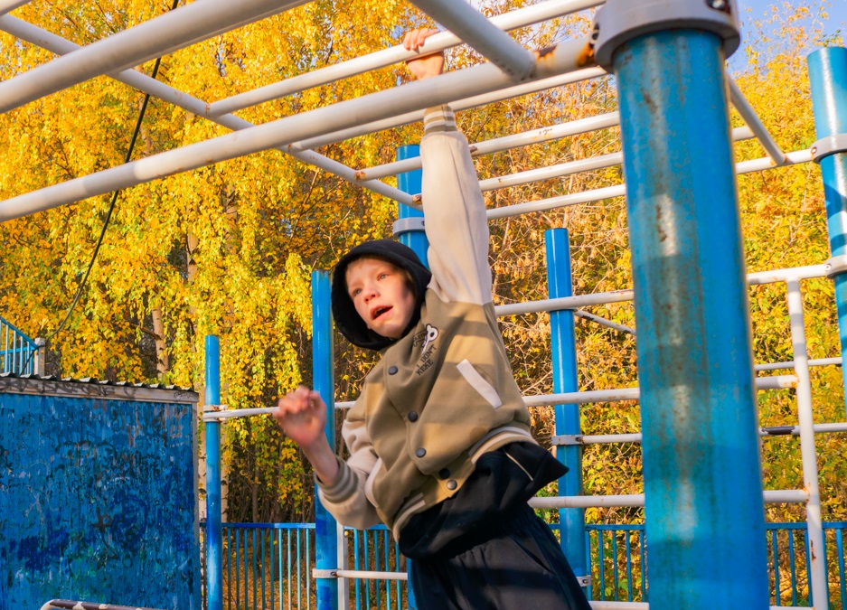 Осенняя погода с солнышком помогла хорошо провести время на спортплощадке - позаниматься на турниках и тренажерах