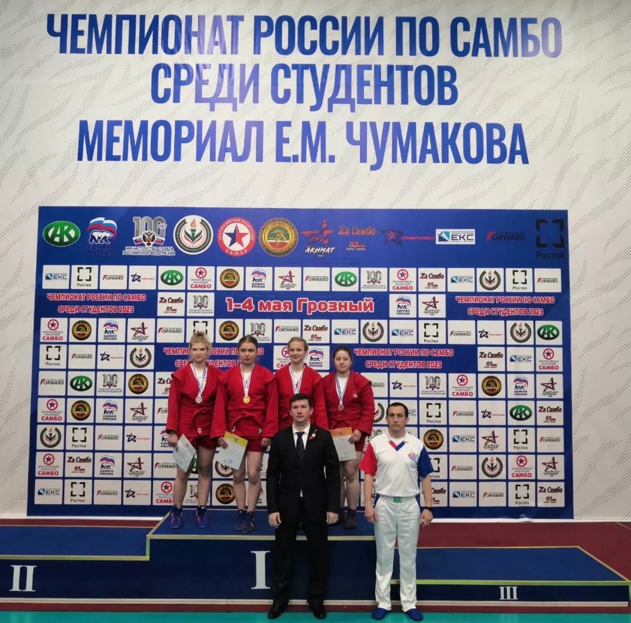 С 1 по 4 мая в Грозном прошел Чемпионат России по самбо среди студентов.Фомичева Евгения стала бронзовой призеркой в своей весовой категории. Поздравляем спортсмену и ее тренера Дуракова С.Н.